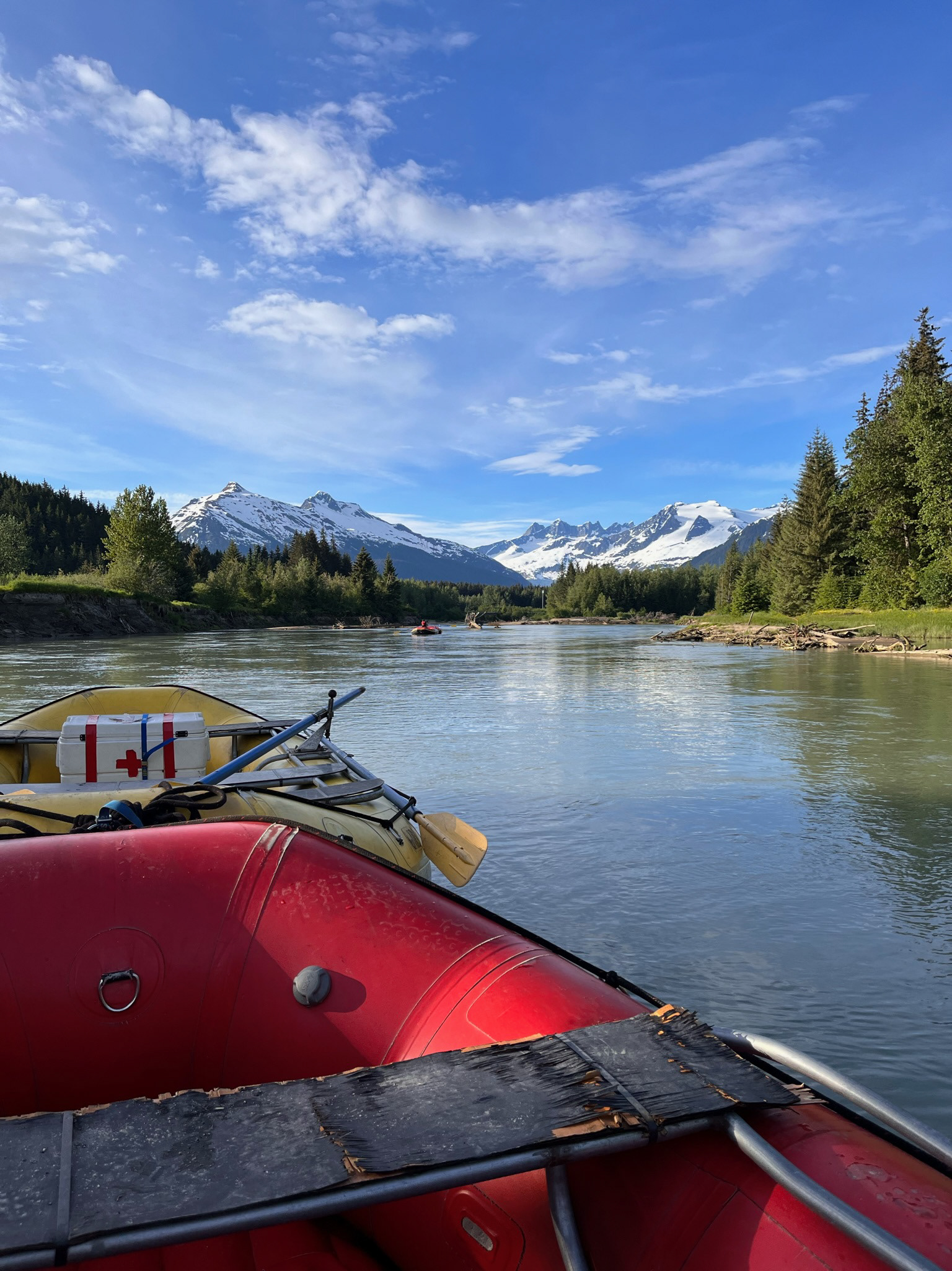 During my days in Alaska, I spent a lot of time rafting the Mendenhall River, which is fed and flooded by the Mendenhall Glacier, providing class II & III rapids. I particularly enjoyed the fluvial geomorphometric component of my job, as it allowed me to see how the river changed throughout the season based on weather, melt, and runoff conditions. Despite working around 70 hours a week, with around 30-40 hours spent on the river, I never grew tired of watching the flora, fauna, wildlife, and migratory birds that surrounded me. My background in geomorphology and geology made this job especially rewarding, as I was able to teach my customers about the technicalities of the environment we were exploring.